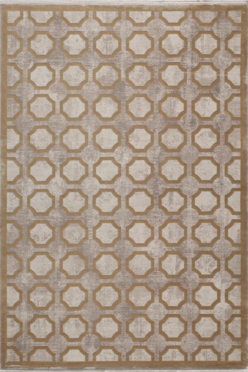 This rug features an elegant lattice pattern that offers a contemporary twist on classic design, creating a look that is both modern and timeless. The interplay of beige and soft brown hues provides a neutral yet captivating color scheme, making it an ideal choice for those seeking to add visual interest without overwhelming a space.
