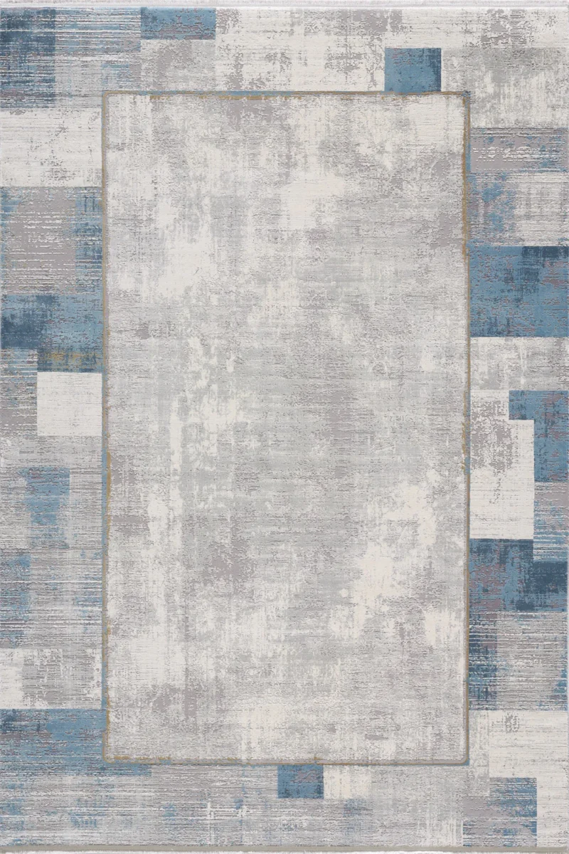 With a harmonious composition of cool blues and gentle greys, this rug captures the essence of modern abstract art. The thoughtful arrangement of rectangular blocks and lines evokes a sense of architectural balance, bringing a structured yet airy feel to any space. The central area's lighter hue offers a stark canvas that is ready to complement and elevate the surrounding decor. The robust construction promises longevity, and the sumptuous texture underfoot offers a tangible luxury, making it a functional piece of art for everyday living.